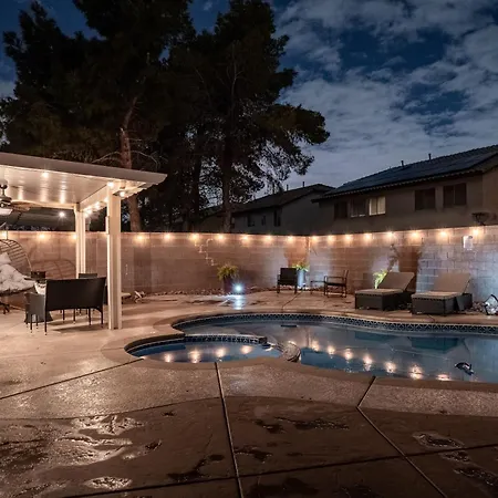 5Br 3Ba Family Friendly Entire Home W Pool, Spa, Games, Tvs, And More has an equipped kitchen with a fridge, a toaster, and a cooktop for a comfortable stay. Guests can dine at Jack in the Box, located 14 minutes' walk away. This property is also a 19-minute drive from McCarran International airport.